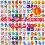 62 in 1 Mini Pokemon Crochet PDF – Pikachu, Charmander, Squirtle & Bulbasaur + More – Instant Digital Download