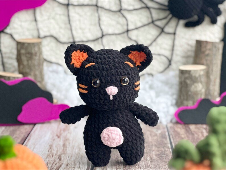 Black Cat Halloween Crochet Pattern, Halloween Cat Decor, Stuffed Animal, Halloween Crochet, Amigurumi Crochet Pattern