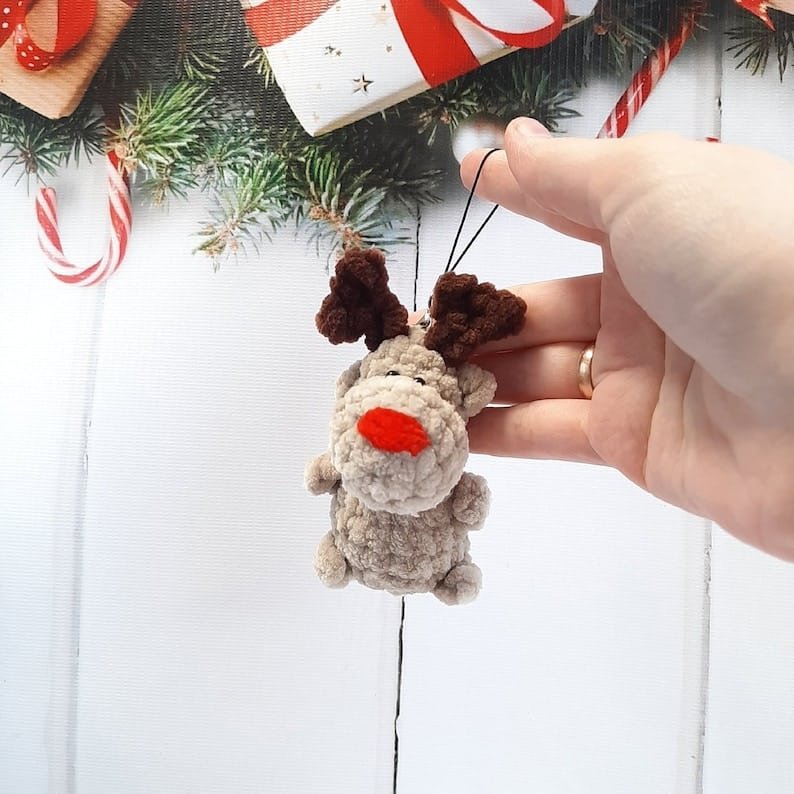 The finished product using a 4.5 mm crochet hook is ~2.7 inches / 7 cm tall without antlers.