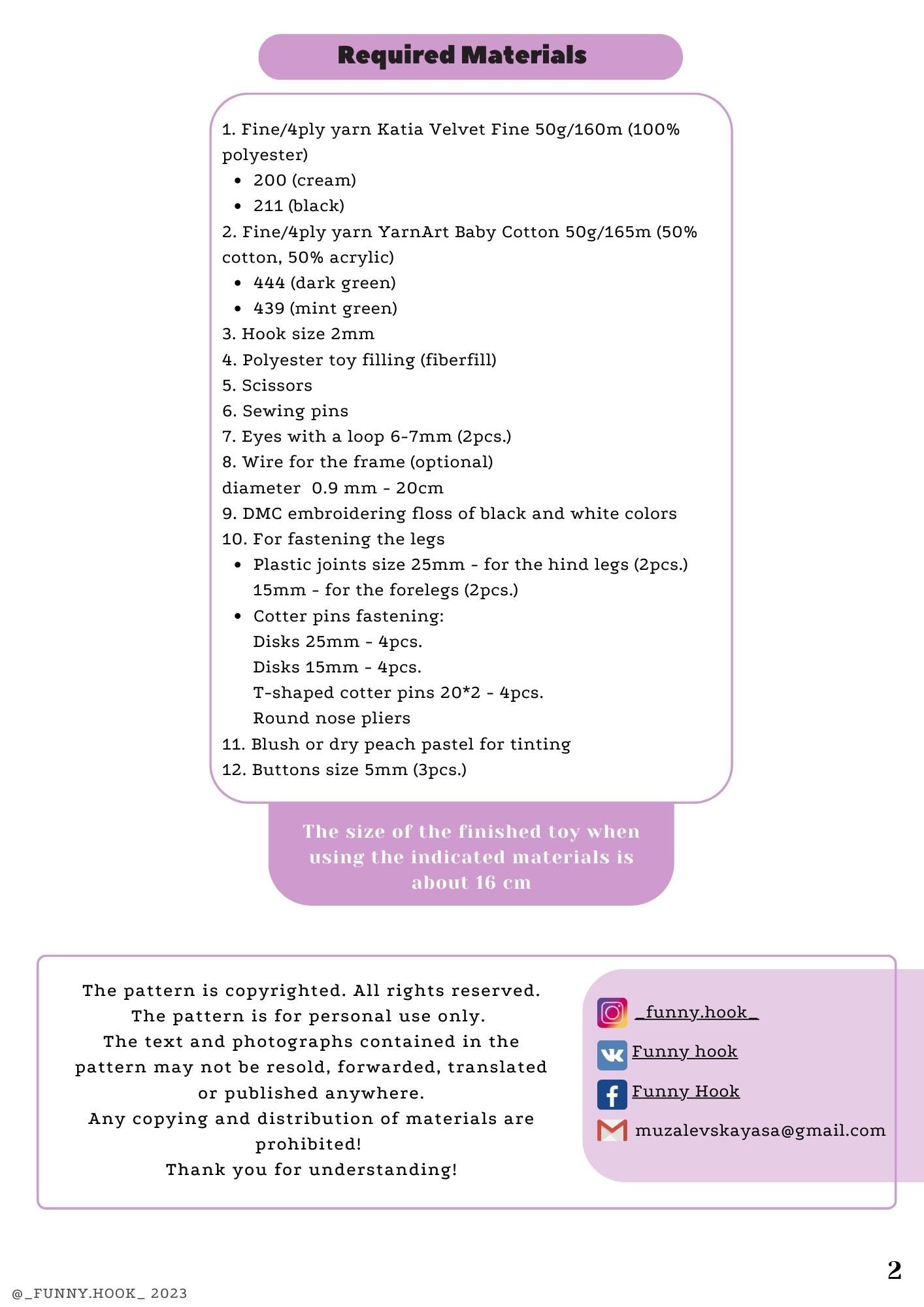This pattern is for personal use only. Sharing information from this pattern is prohibited. If you publish the photos of the toys you made with this pattern, crediting the author is always welcome.