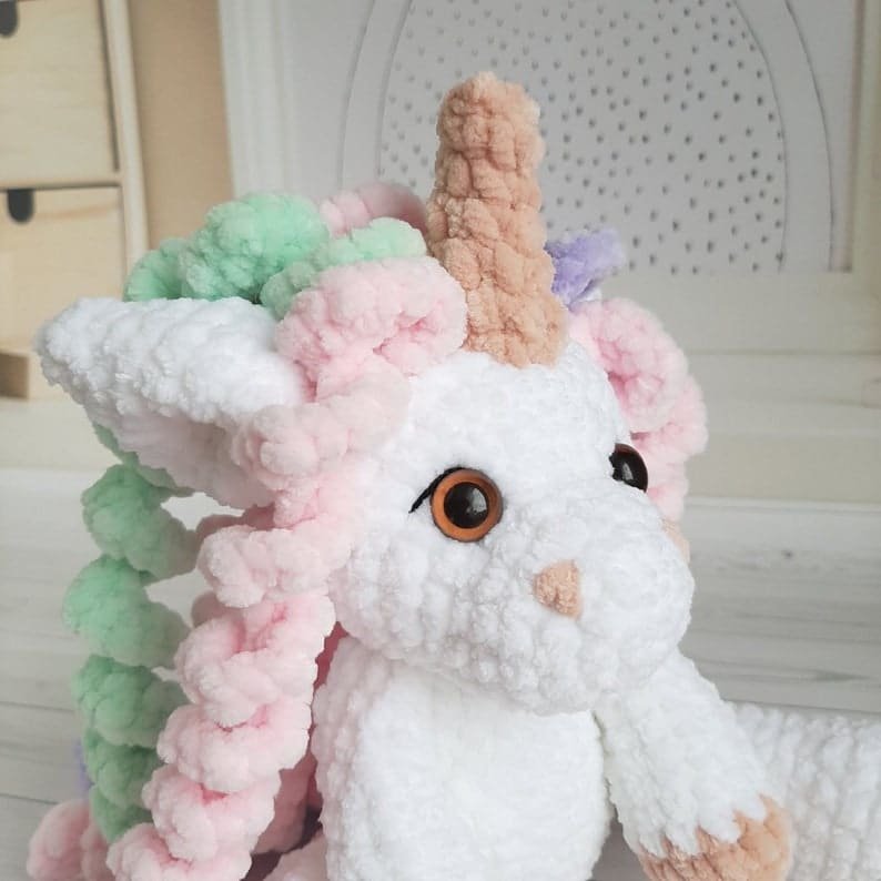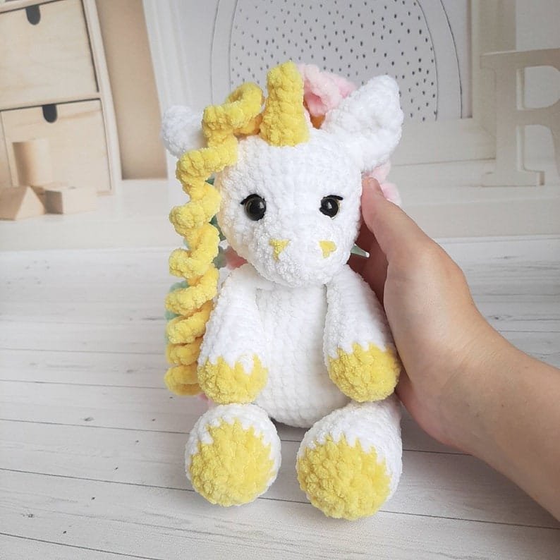 Pattern includes detailed instructions with plenty of photo references to instruct you on how to make unicorn step by step.
