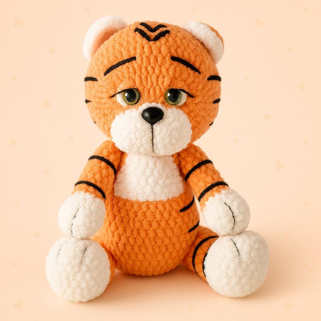 🐯✨ Giant Tiger – Amigurumi Crochet Pattern PDF | 60–65 cm Plush Toy | Detailed Tutorial | Striped Tiger with Hat