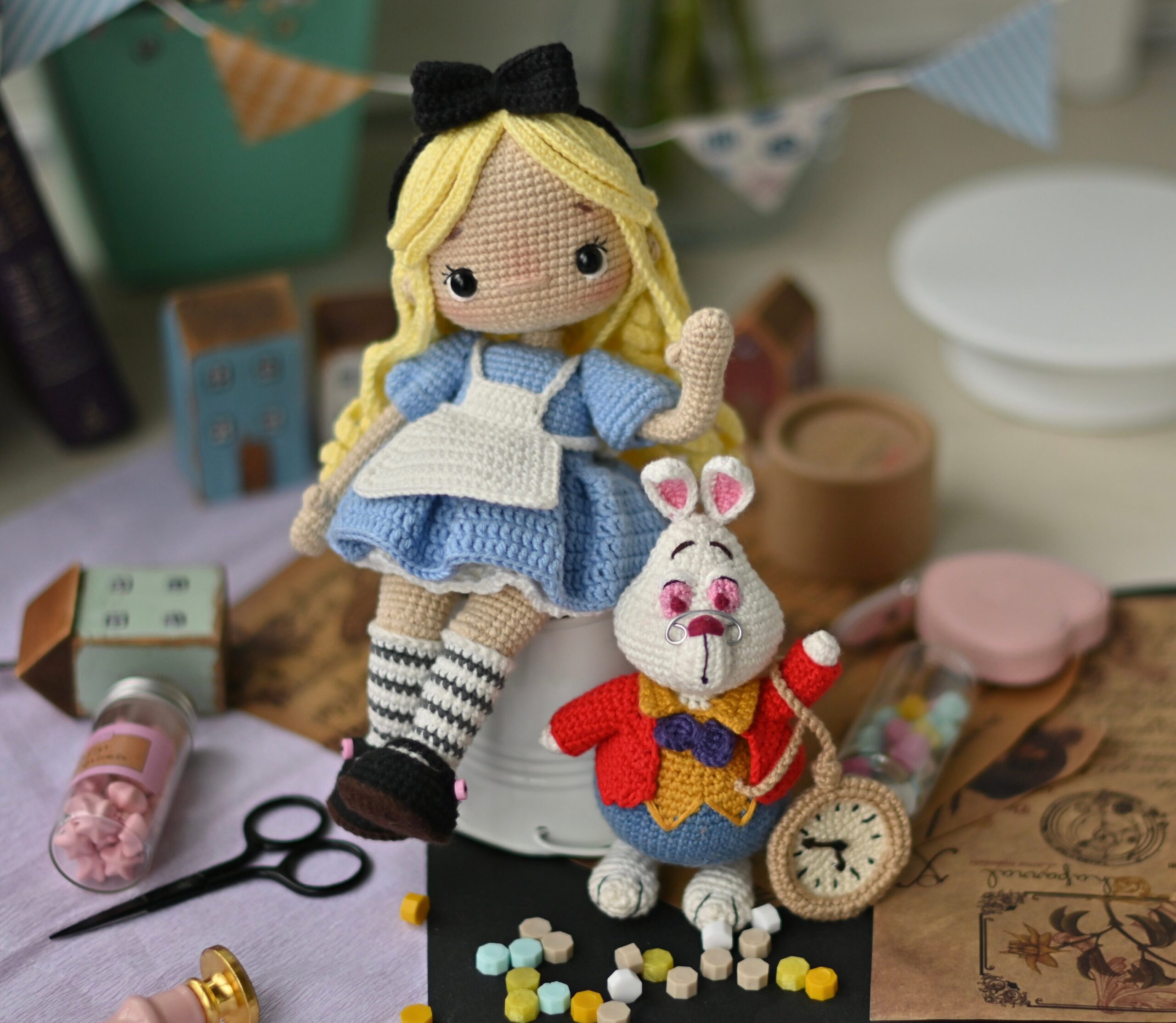 SET 2 in 1: Crochet pattern for doll Alice and Rabbit PDF English, Spanish amigurumi