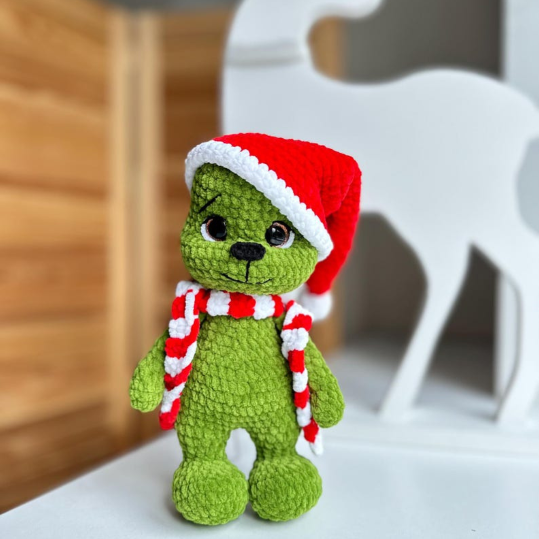 Meet this adorable green Christmas character – soft, cozy, and full of holiday spirit!
